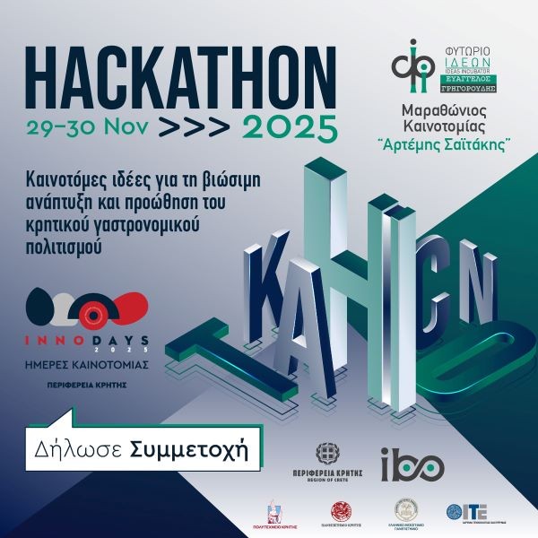 Το Ελληνικό Μεσογειακό Πανεπιστήμιο υλοποιεί τον Μαραθώνιο Καινοτομίας «Αρτέμης Σαϊτάκης» – Hachathon 2025 στο πλαίσιο της εκδήλωσης «InnoDays – Ημέρες Καινοτομίας της Περιφέρειας Κρήτης 2025»